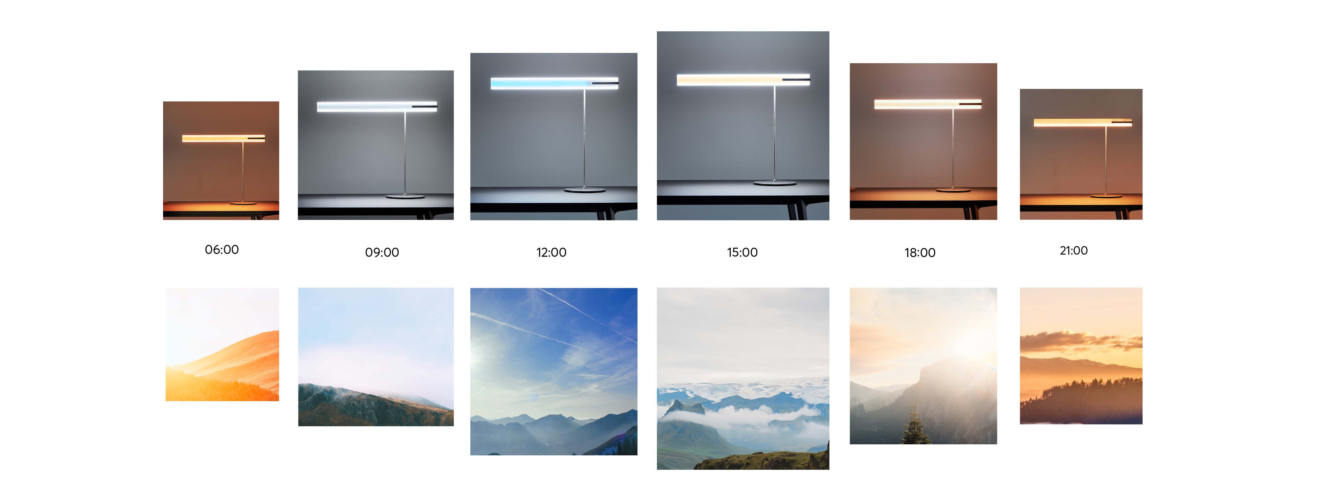 Häufig verbringen wir mehr als 90% unserer Zeit im Innenraum. Die HEAVN One reproduziert die natürliche Zusammensetzung des Sonnenlichts und verändert ihre Lichtstimmung innerhalb des Tagesverlaufs. Als einzigartige Kombination aus Schreibtisch- und Tageslichtleuchte unterstützt sie so Ihren Biorhythmus und Ihr Wohlbefinden - auf eine natürliche Art.